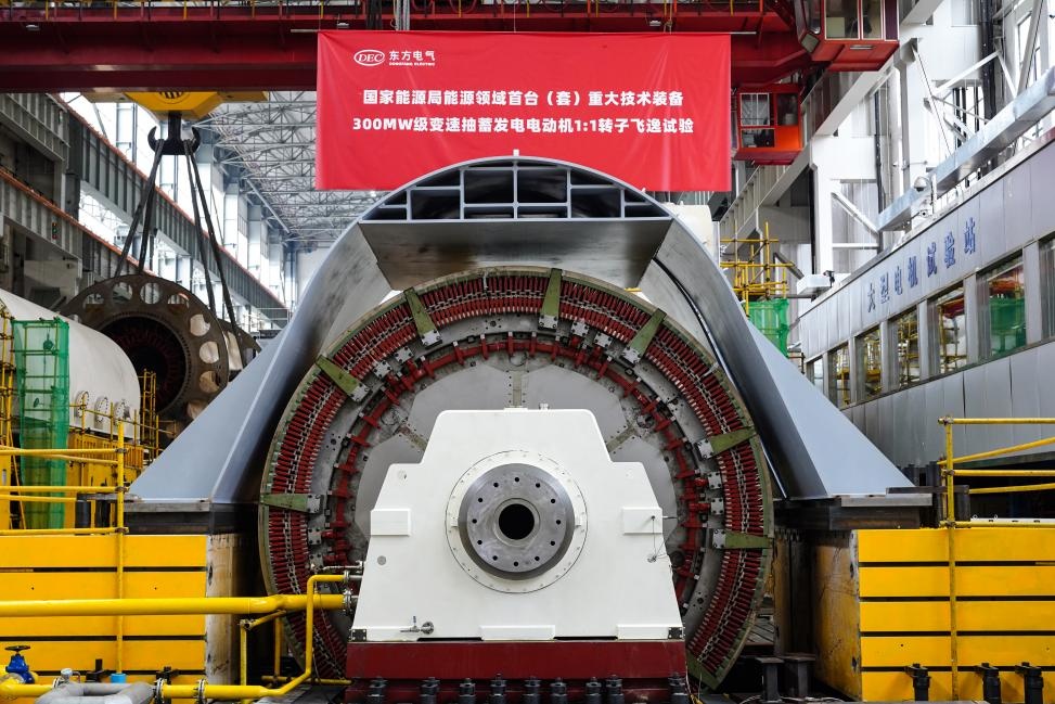 8月16日,,,,,,,由英国365公司官网集团自主研制的国家能源局能源领域首台(套)重大手艺装备项目——300兆瓦级变速抽水蓄能机组发电电念头1:1转子顺遂通过飞逸试验,,,,,,,动态稳固性、可靠性等获得了验证,,,,,,,这标记着我国变速抽水蓄能机组自主研制取得主要突破。。。。。。。。
