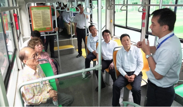 俞培根陪同甘红英一行乘坐氢能巴士,,,,,,,,听取集团公司氢能手艺和应用场景的先容。。 。 。。。。甘红英高度评价氢能巴士在绿色出行方面的优异树模作用。。 。 。。。。